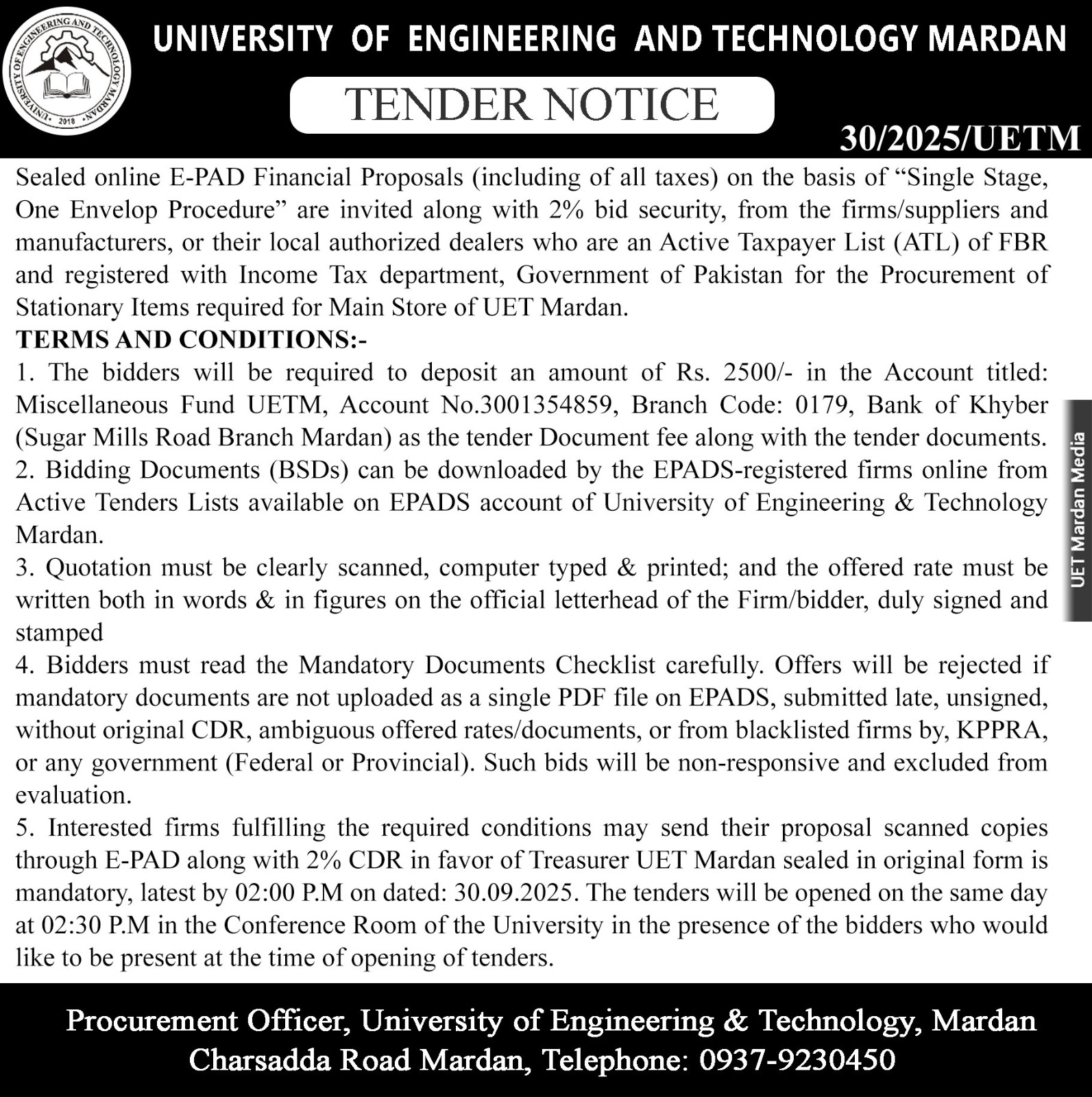 Scruitny of the Candidates for the Position of Treasurer (BPS-20) on Three Years Contract Basis in in UET Mardan