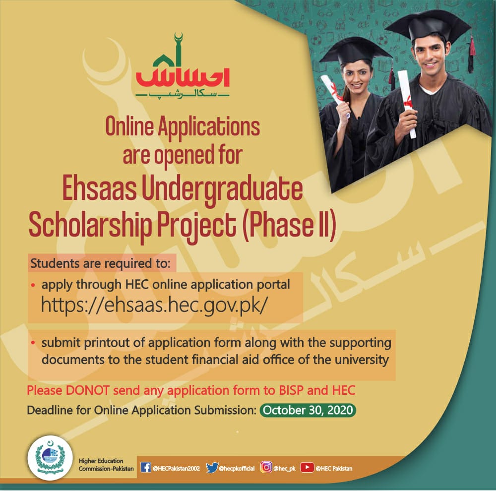 Ehsaas Scholarship(EUSP) Online Application (Phase-II ) are Open