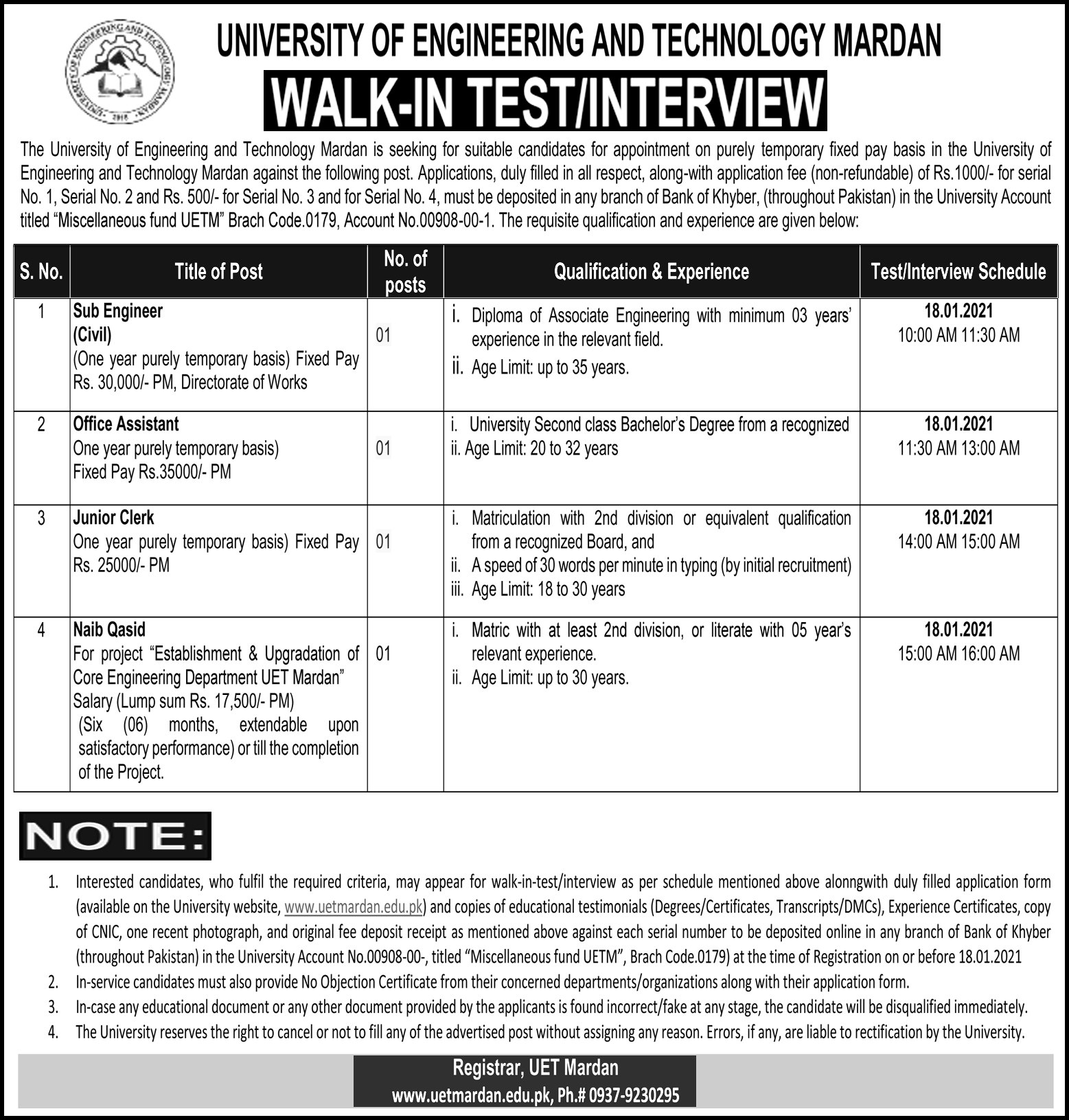 Scruitny of the Candidates for the Position of Treasurer (BPS-20) on Three Years Contract Basis in in UET Mardan