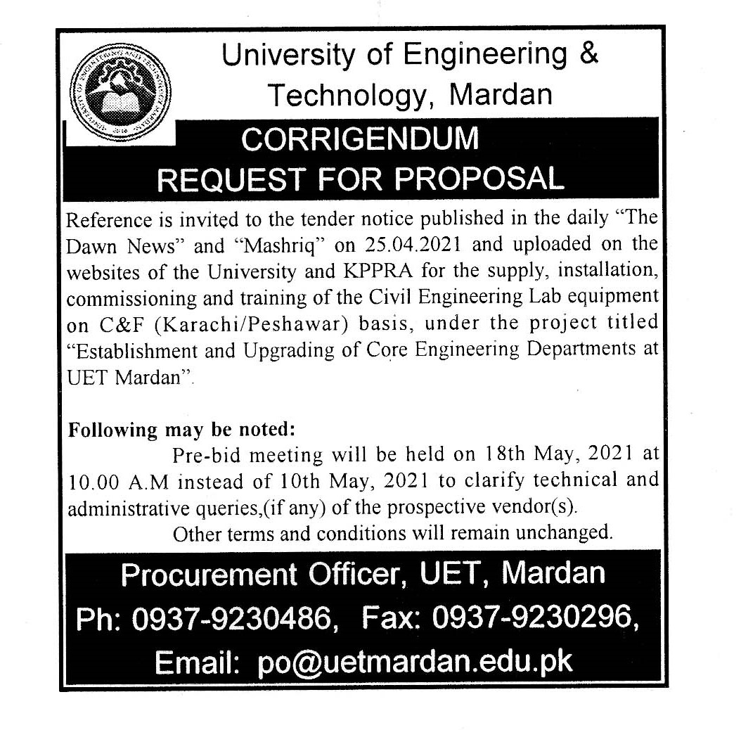 CORRIGENDUM: SUPPLY, INSTALLATION, COMMISSIONING AND TRAINING OF THE CIVIL ENGINEERING LAB EQUIPMENT