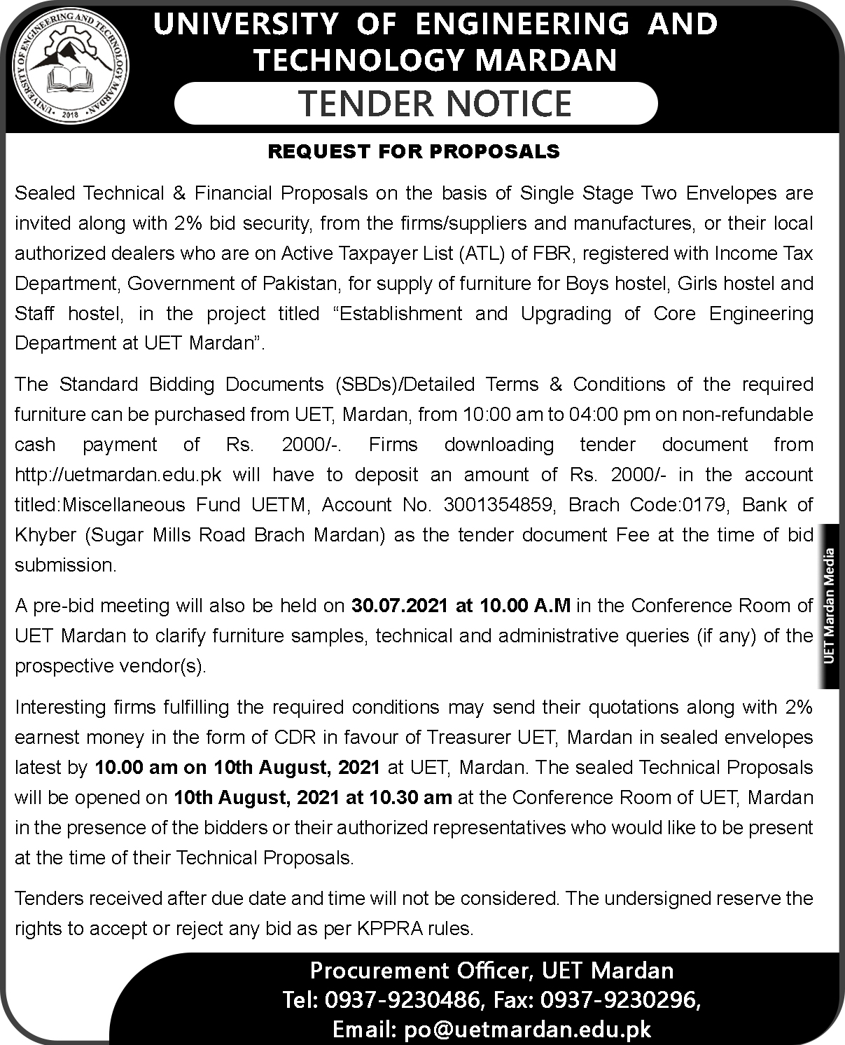 Scruitny of the Candidates for the Position of Treasurer (BPS-20) on Three Years Contract Basis in in UET Mardan