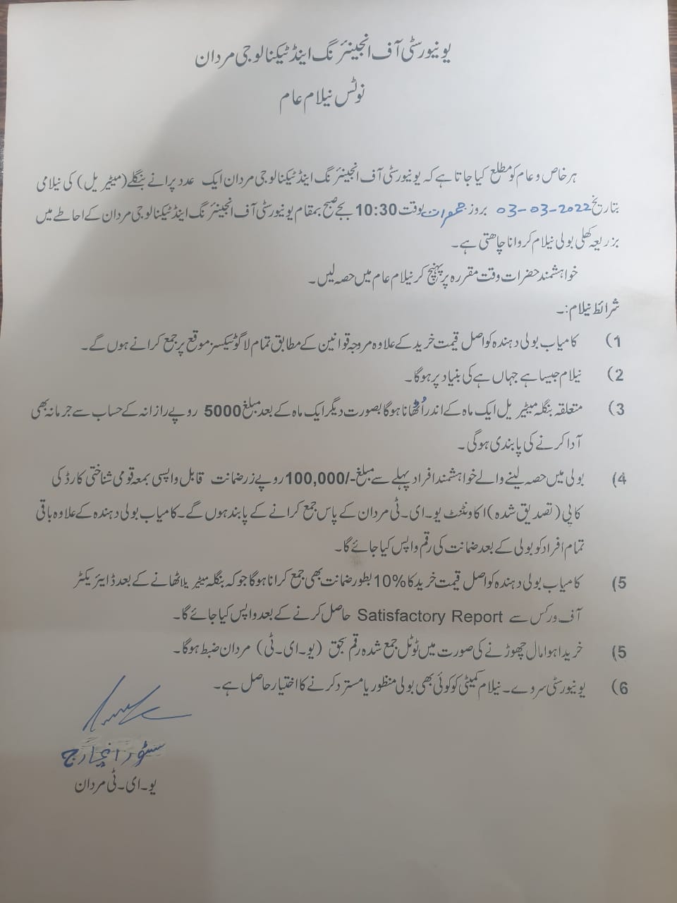 Scruitny of the Candidates for the Position of Treasurer (BPS-20) on Three Years Contract Basis in in UET Mardan