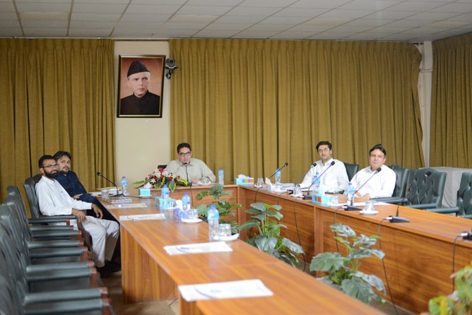 The meeting was chaired by Prof. Dr. Ibrar Ali Shah (Chairman of the Department) and was attended by Prof. Dr. Muhammad Usman (Chairman CS, UET Mardan), Dr. Muhammad Sohail Khan (Assistant Professor), Engr. Imran Maqsood (Assistant Professor), Engr. Fahim Ullah (Lecturer), Engr. Muhammad Ishaq (Lecturer), Dr. Omar Usman (Associate Professor & Director FAST, Peshawar), Dr. Salman Ahmad (Assistant Professor, Deptt. of Computer System Engineering, UET Peshawar), Engr. Malak Ahsan (CEO, Codematics Inc., Abbottabad) and Engr. Asad Iqbal (CEO, Bircube Technologies, Pvt. Ltd).