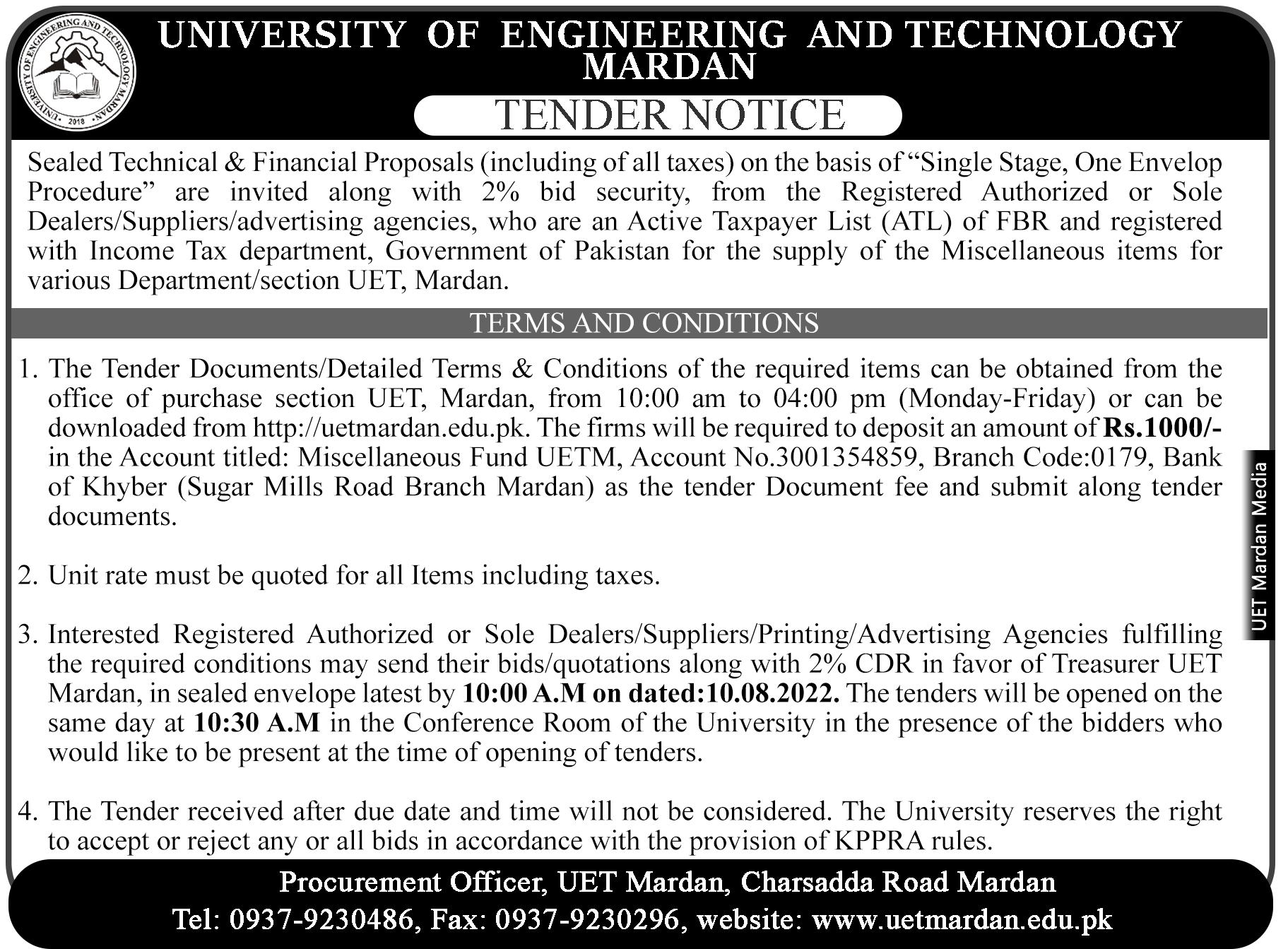 Scruitny of the Candidates for the Position of Treasurer (BPS-20) on Three Years Contract Basis in in UET Mardan