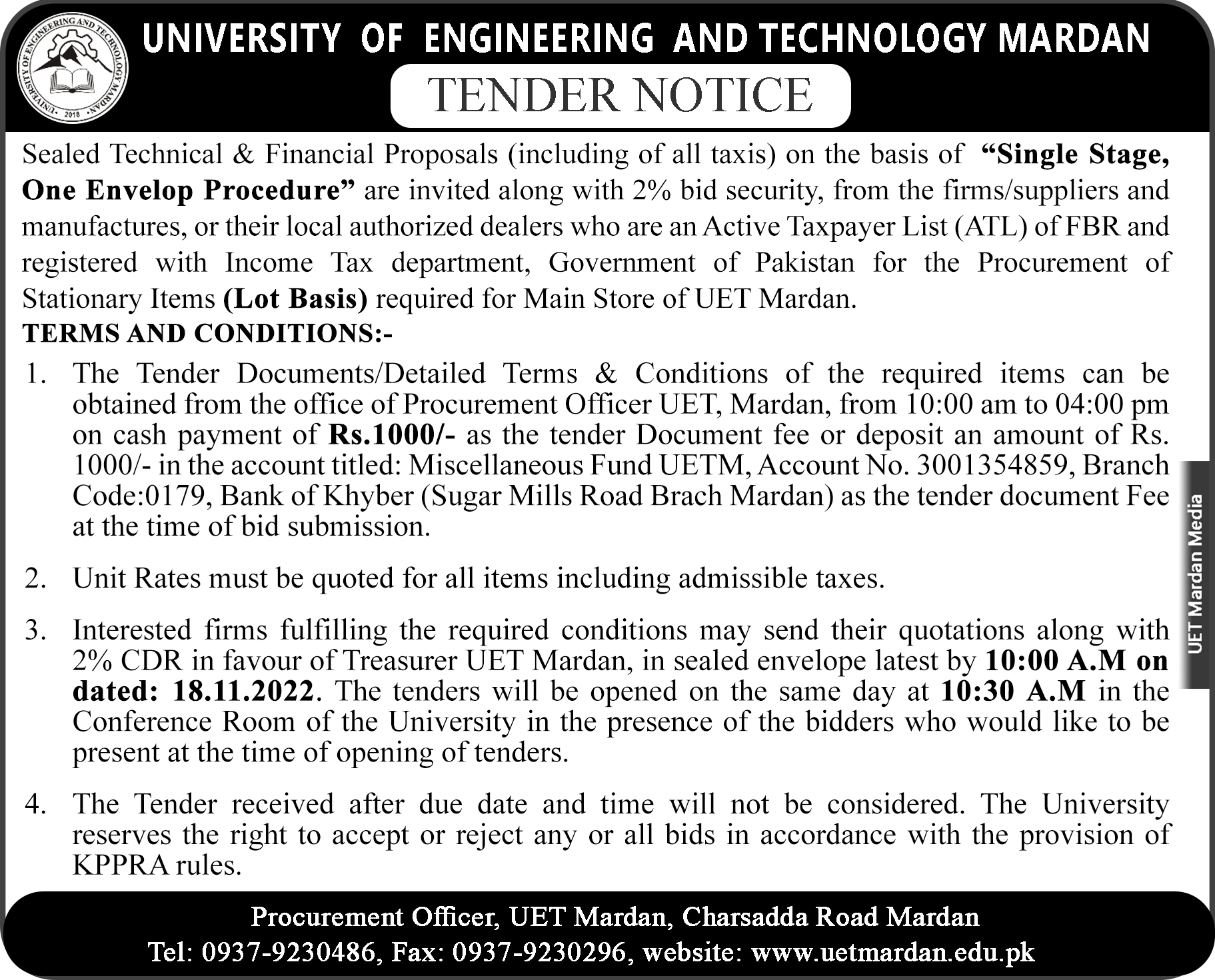Scruitny of the Candidates for the Position of Treasurer (BPS-20) on Three Years Contract Basis in in UET Mardan
