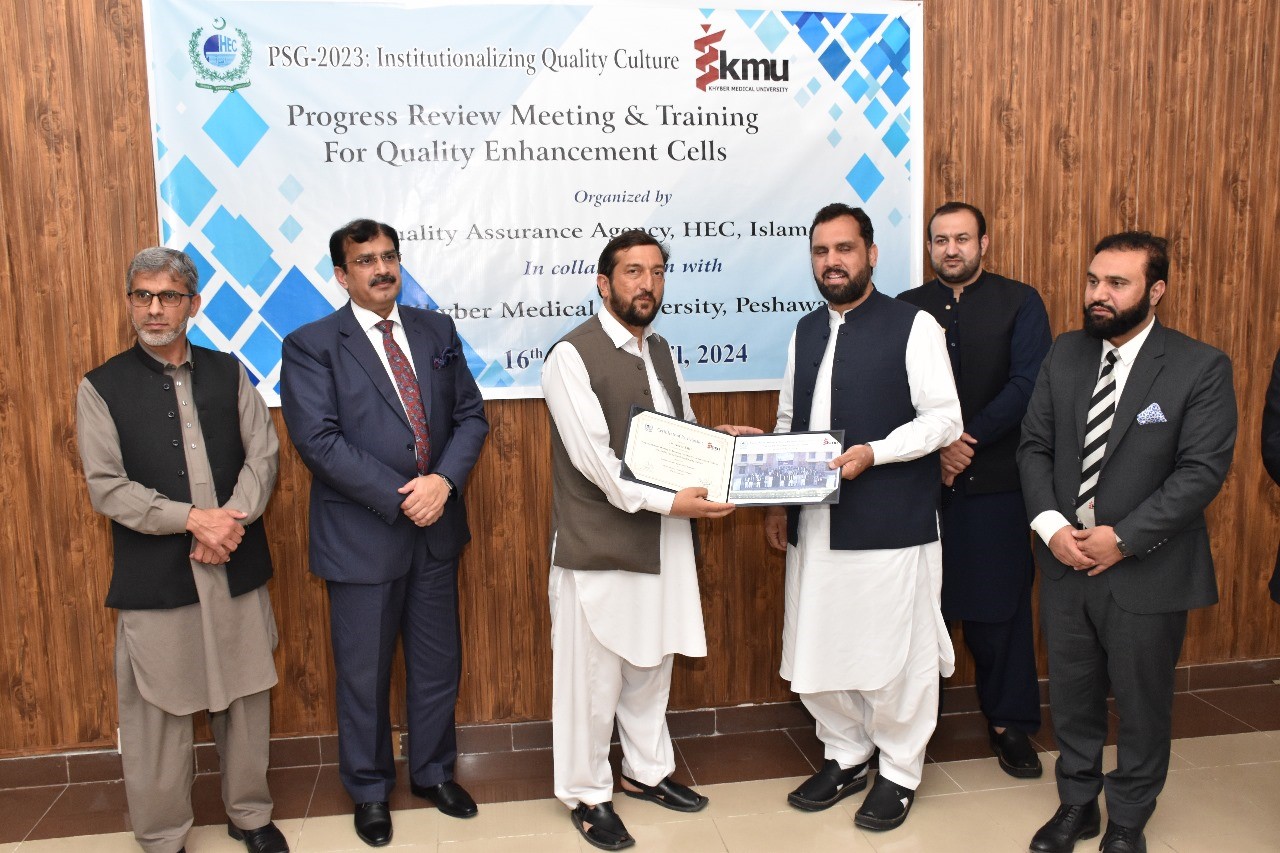 Director of Quality Enhancement Cell (QEC) The University of Engineering and Technology, Mardan, Dr. Fazal Muhammad attended a three-day Progress Review meeting and training on Pakistan's Precept, Standards, and Guidelines for Quality Assurance in Higher Education (PSG-2023), at KMU Peshawar from April 16 to 18, 2024. The event was organized by the Quality Assurance Division (QAD) of the Higher Education Commission (HEC)