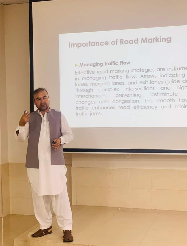 An insightful seminar on the "Importance of Road Making/Signage: Enhancing Safety and Traffic Flow" was organized by the Department of Civil Engineering at UET Mardan on May 7, 2024, in Seminar Hall UET Mardan, featuring Dr. M. Alam, Assistant Professor CED. The seminar emphasized the crucial role of proper road marking and signage in a transportation system, highlighting their importance in guiding drivers, pedestrians, and cyclists. It stressed the need for well-designed, clear, and visible markings to facilitate informed decision-making by drivers, reduce congestion, minimize accidents, and improve traffic flow.