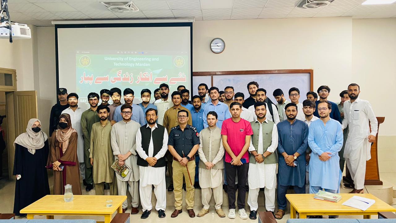 On May 16, 2024, the University of Engineering and Technology (UET) Mardan, in collaboration with the District Police Mardan, hosted an Anti-Drugs Awareness Seminar, aligning with the Higher Education Commission's (HEC) Anti-Drug Awareness Policy. The event featured Mr. Arshad Khan, SP Investigation, as the Chief Guest, who delivered a comprehensive talk on the dangers of drug abuse and the corresponding legal framework. Students engaged in a productive question session, gaining valuable insights from Mr. Khan's expertise. The seminar was graced by the presence of Dr. Fazal, Director QEC, and Mr. Khyber Khan Khattak, Director of Clubs & Societies, who jointly presented certificate of appreciation to the distinguished guest, emphasizing the importance of such initiatives in strengthening community awareness and collaboration against substance abuse.