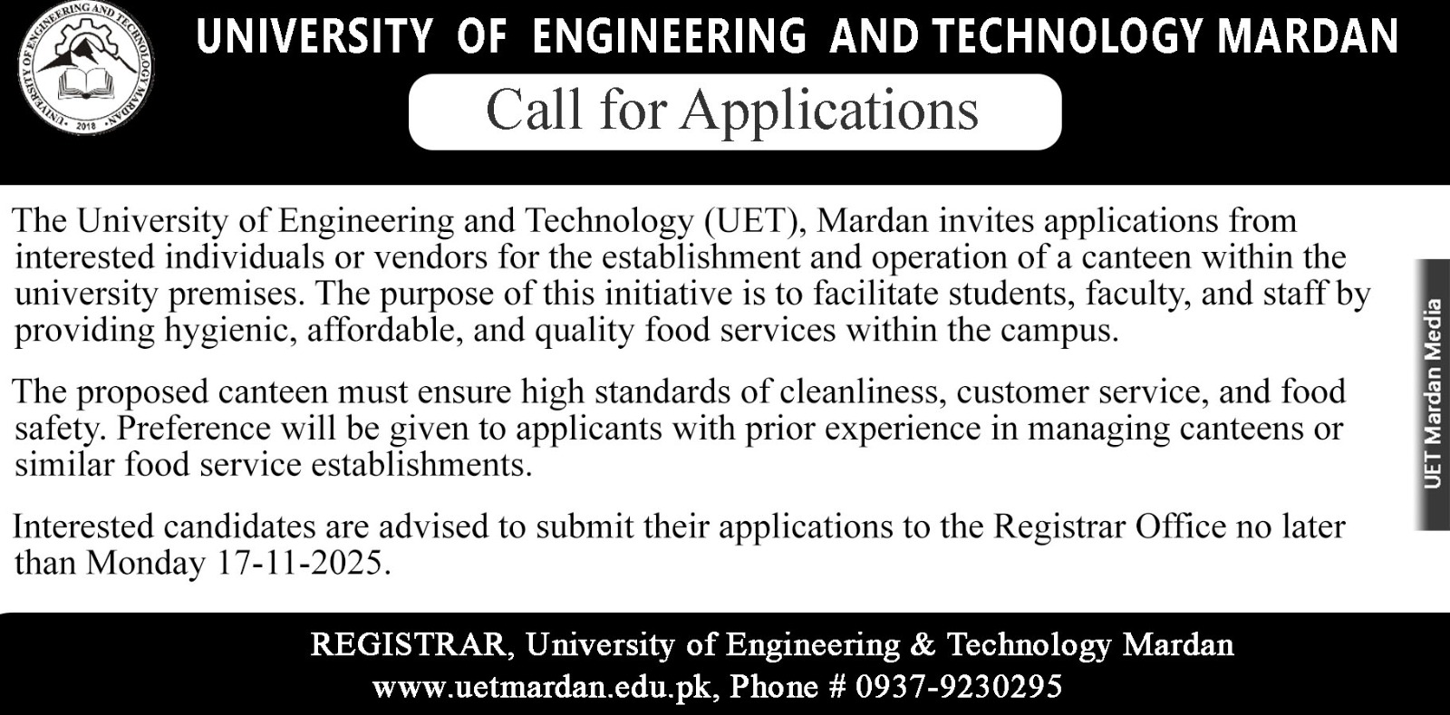 Single Stage Two Envelope Procedure for Procurement/Hiring of Security Firm's Services for UET Mardan