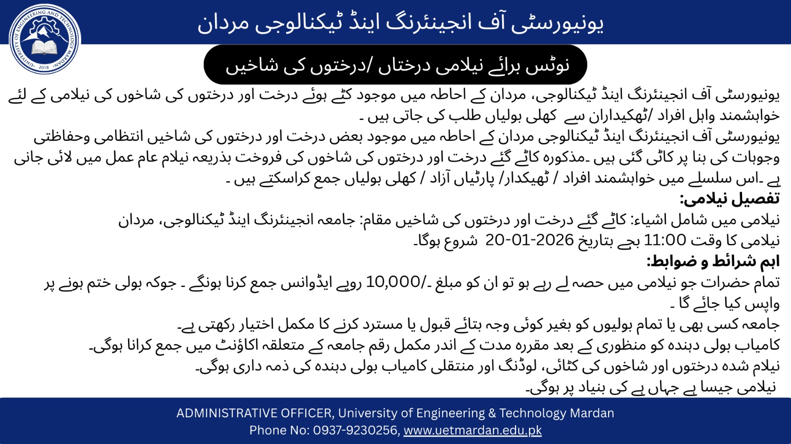 TENDER OF CAFETERIA AND SHOPS AT UET MARDAN