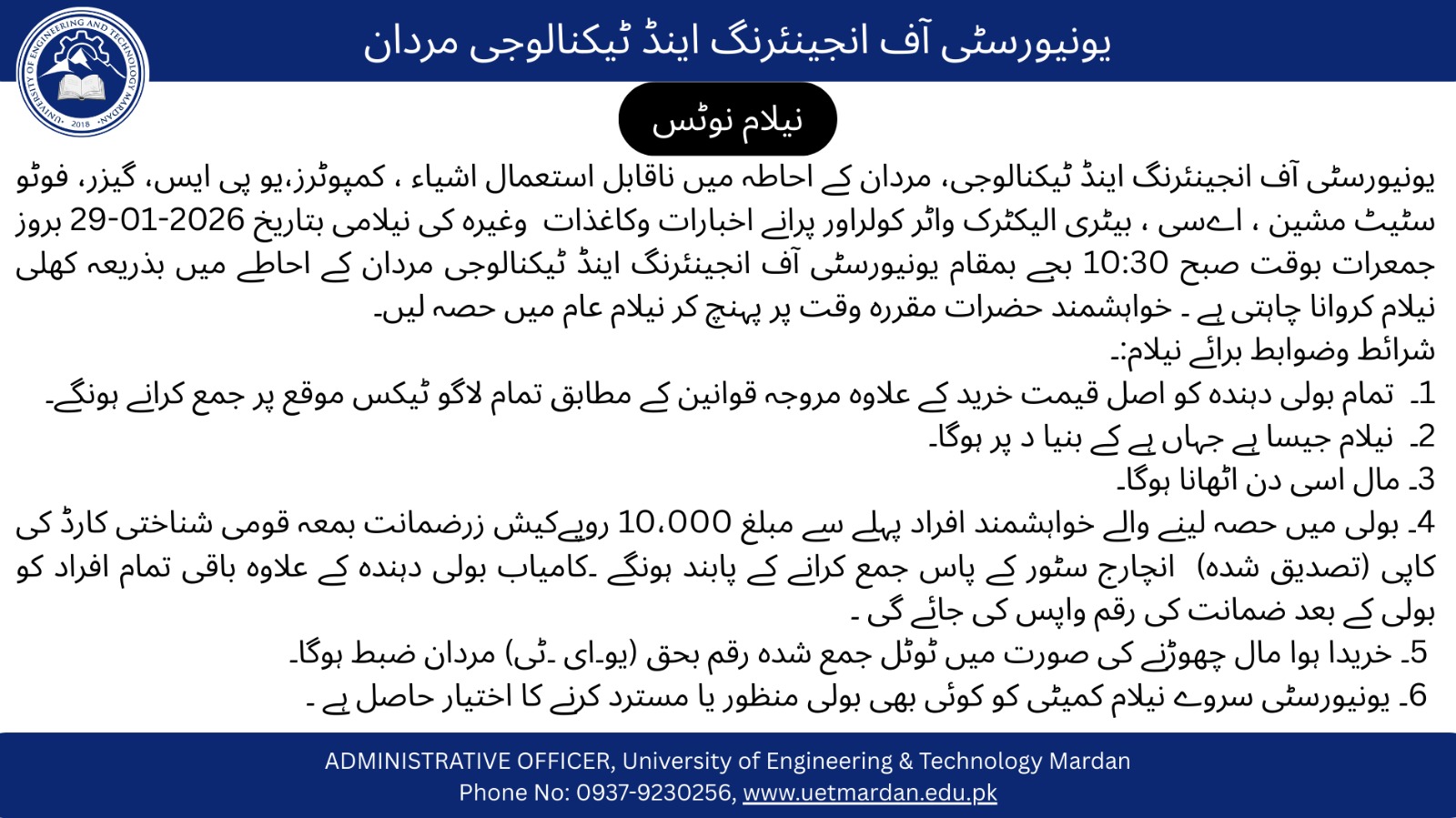 TENDER OF CAFETERIA AND SHOPS AT UET MARDAN