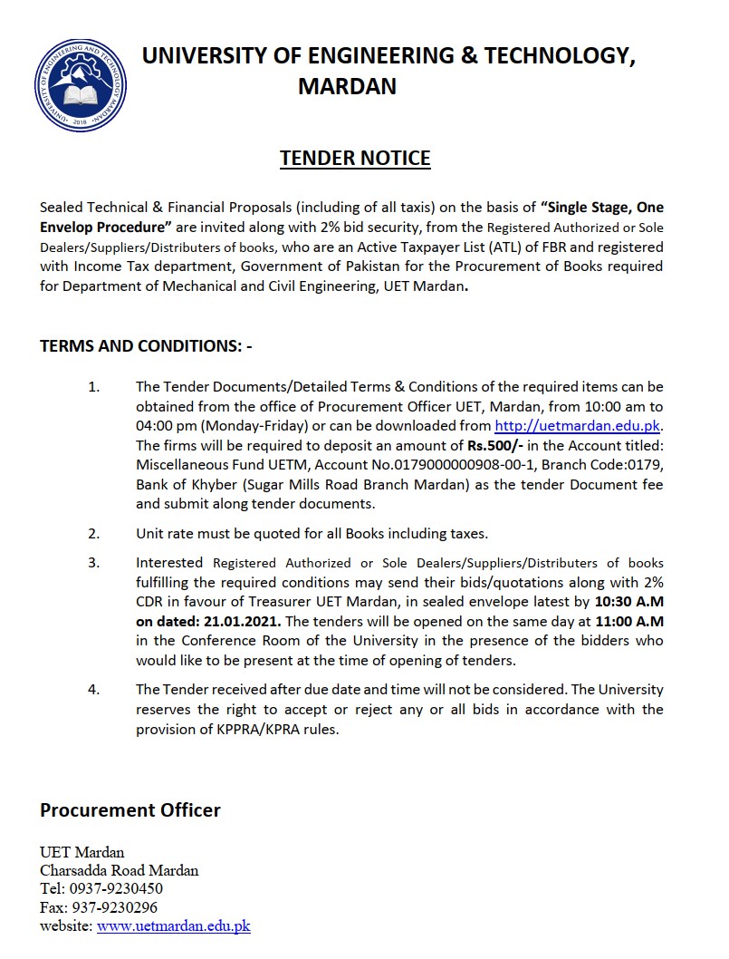 Scruitny of the Candidates for the Position of Treasurer (BPS-20) on Three Years Contract Basis in in UET Mardan